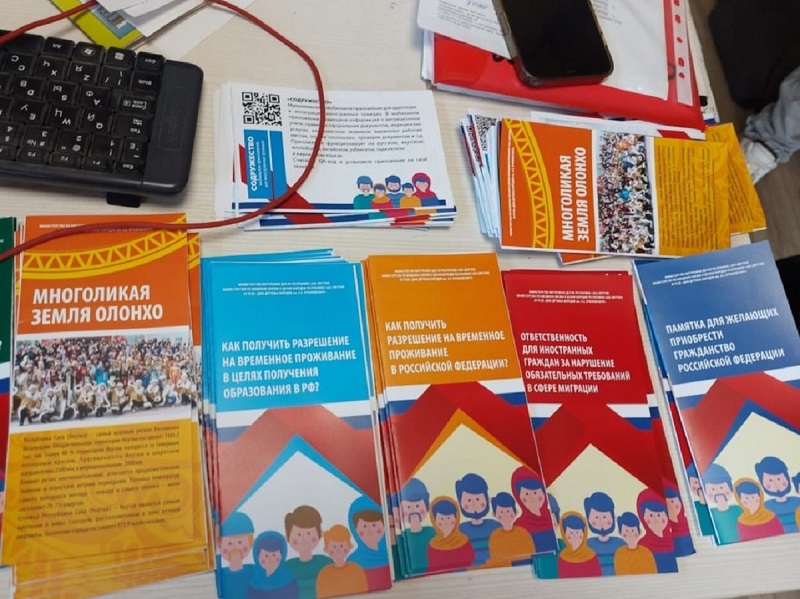 Мероприятия по информированию иностранных граждан о правовых нормах Российской Федерации, жизни и укладе российского общества, по адаптации и интеграции иностранных граждан проводятся Домом дружбы в центрах национально-культурных объединений, на территориях работодателей, а также с выездом в районы Республики Саха (Якутия).